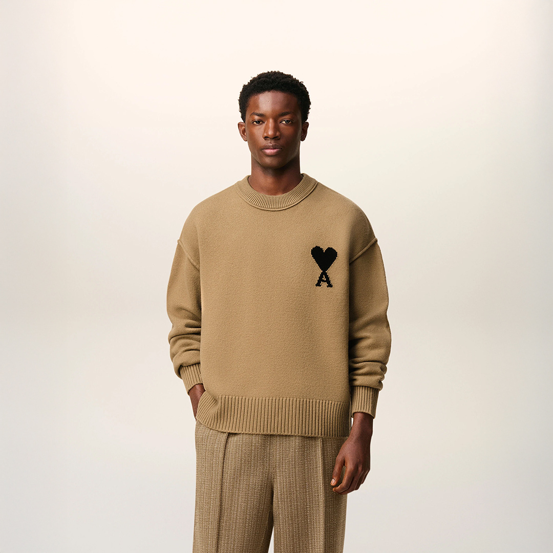 Ami Paris Brown Wool Ami De Coeur Crewneck Sweater