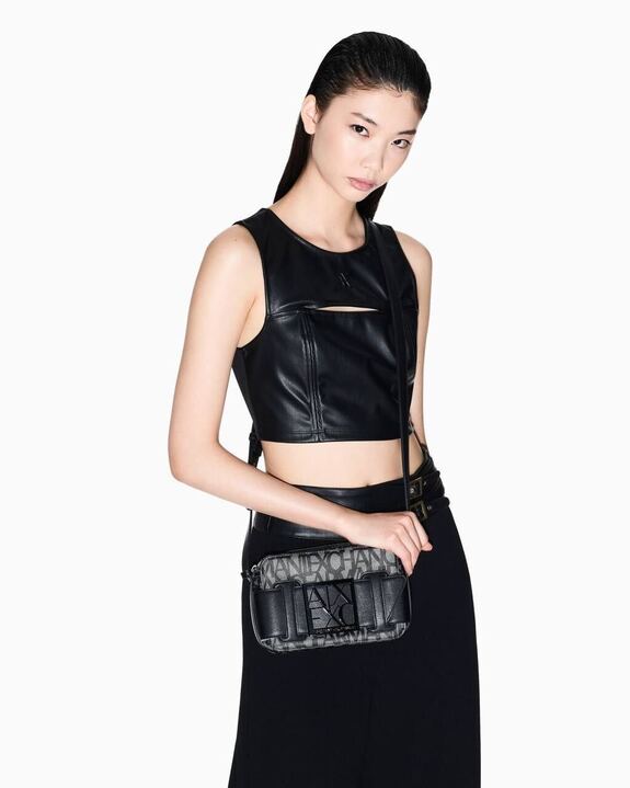 Armani Exchange Logo Placket Top Zip Camera Crossbody Bag