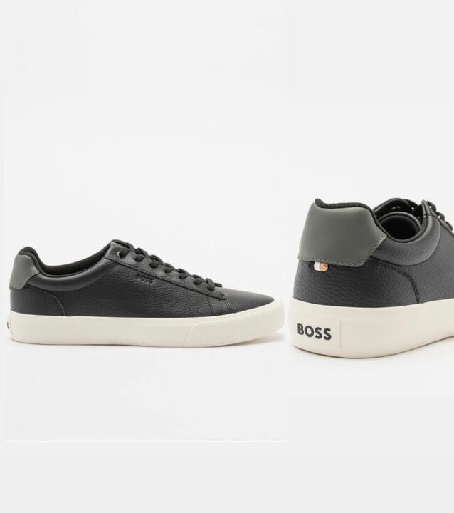 Boss Faux Leather Sneakers With Contrasting Heel