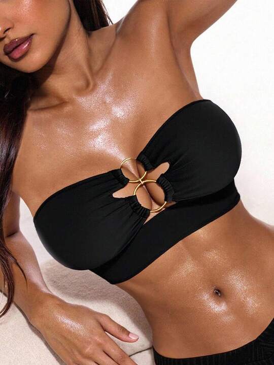 Shein Swim Basics Summer Beach Ring Linked Bandeau Bikini Top