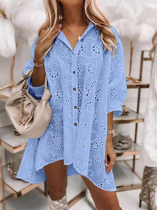 Shein Vcay Casual Loose Single Breasted Burnt Embroidery Blouse, Great For Vacation