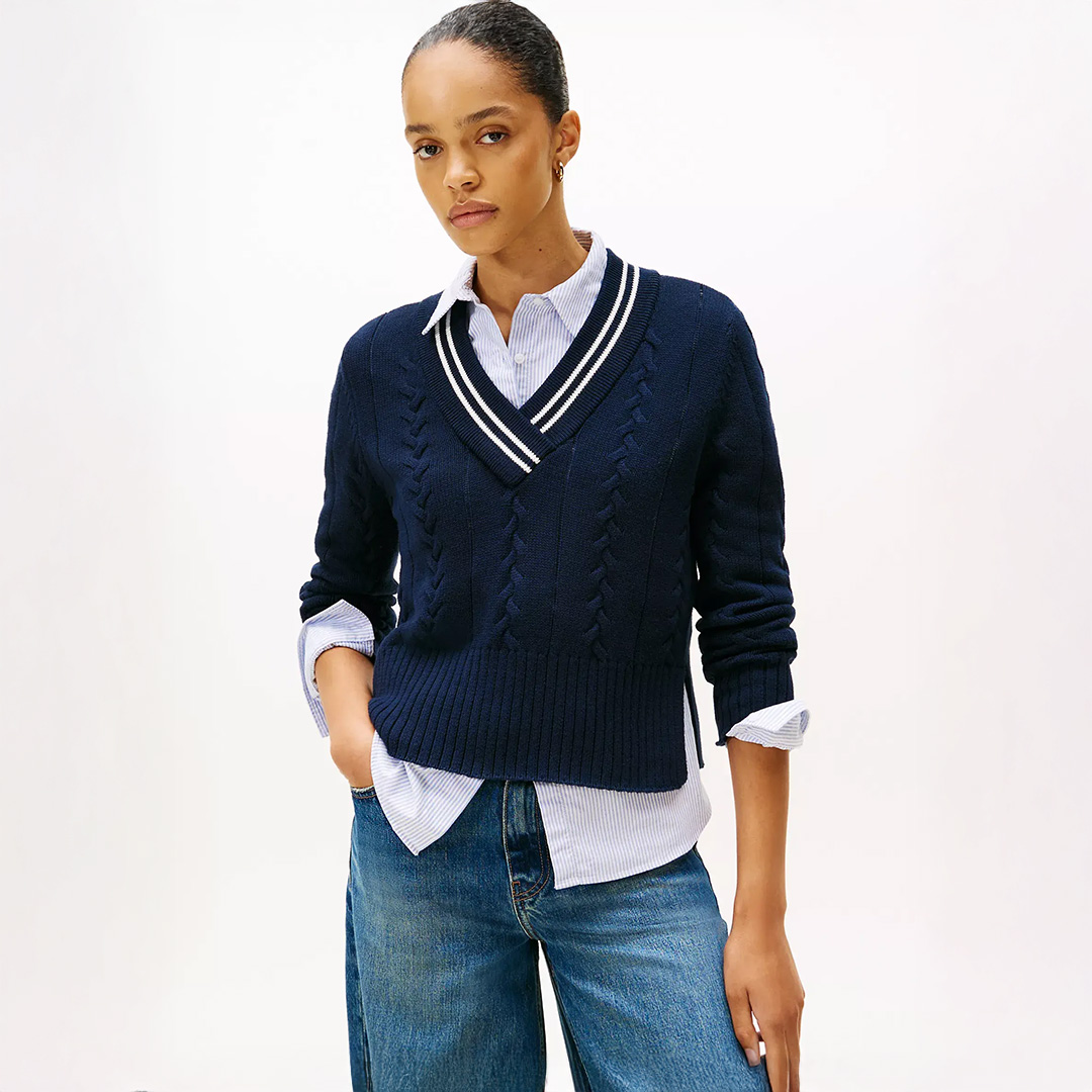 Tommy Hilfiger Cable Knit V-neck Sweater