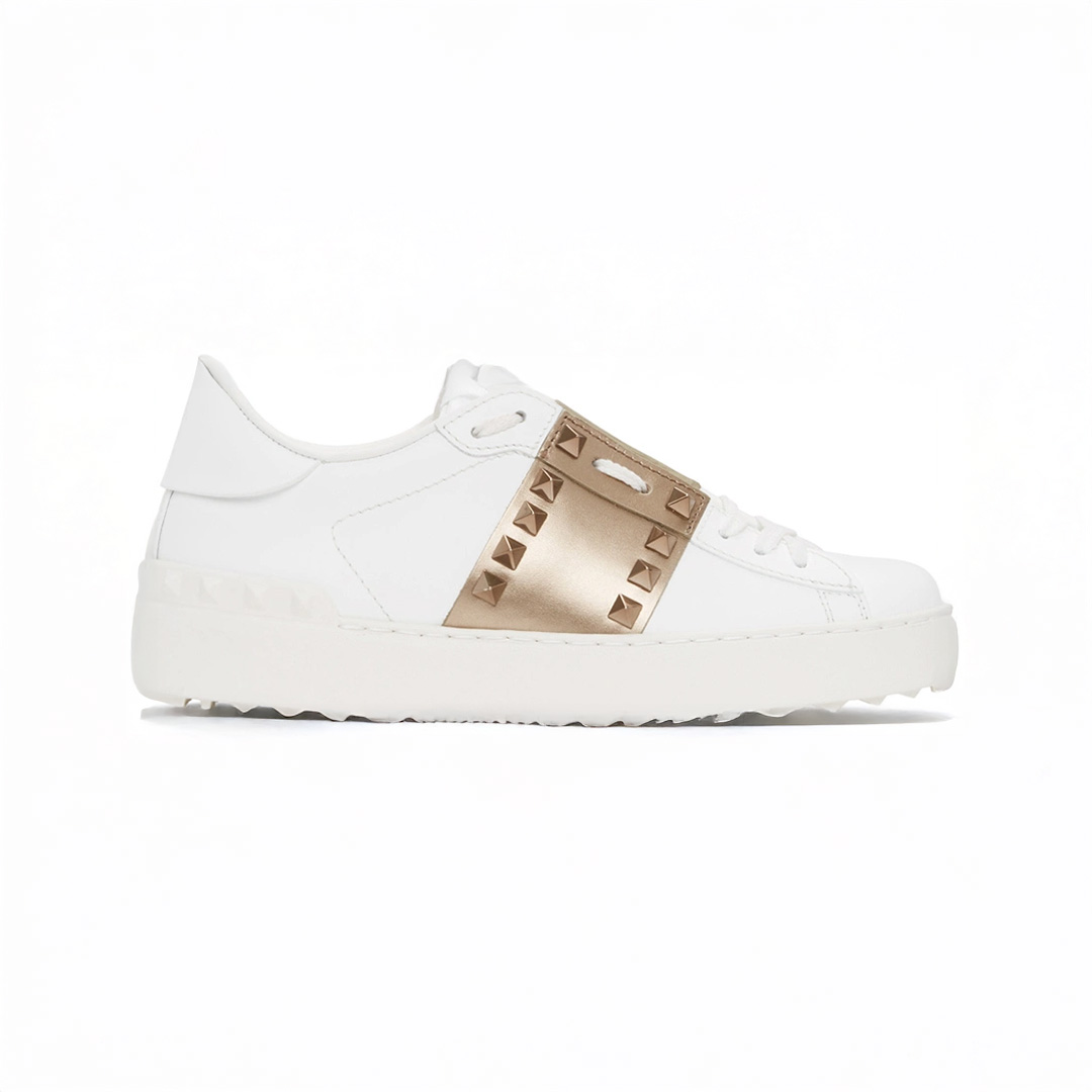 Valentino Garavani White & Bronze Rockstud Open Sneakers