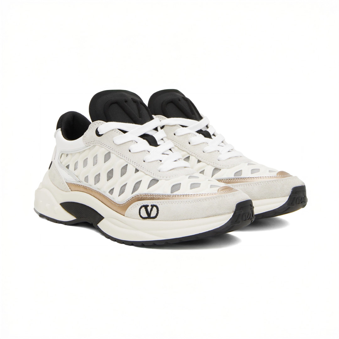 Valentino White Multicolor Leather & Fabric Ready Go Runner Sneakers